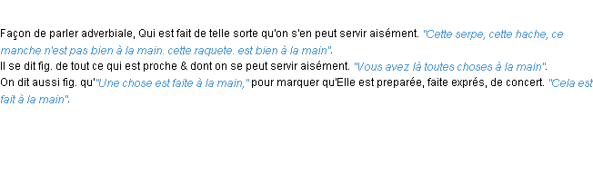 Ancienne définition académique pour le terme « a la main » (parue en 1694).