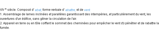 Ancienne définition « abat-vent » du dictionnaire académique Français, parution de l’année 1835.
