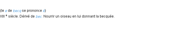 Ancienne définition académique pour le terme « abecquer » (parue en 1798).
