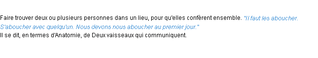 Signification éditée en 1986 pour le terme « aboucher » par l’Académie Française.