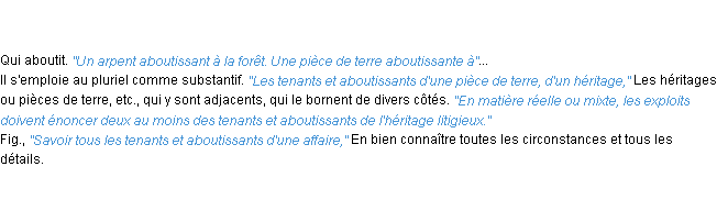 Ancienne signification du terme « aboutissant », parution de 1835, dictionnaire académique Français.