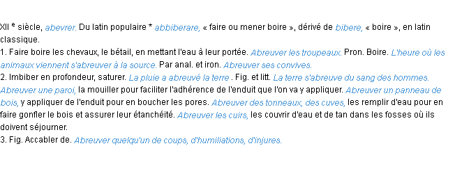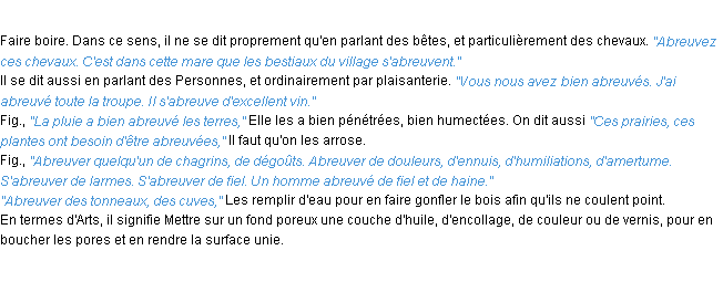 Signification éditée en 1932 pour le terme « abreuver » par l’Académie Française.