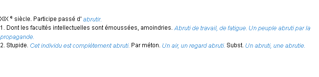 Définition de l’équipe de la-definition.fr (édition de 2009) pour le mot « abruti ».