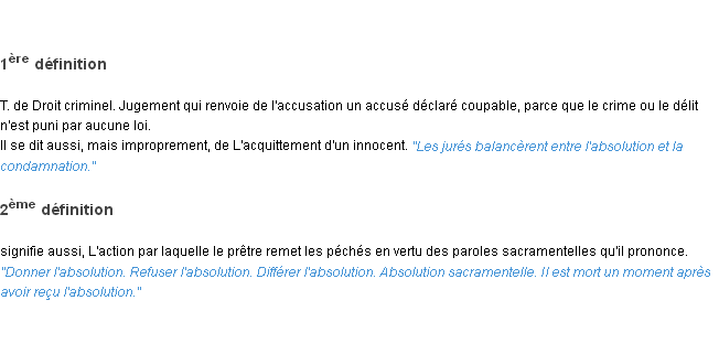 Ancienne définition de « absolution » de source académique (Académie Française, parution de 1835).