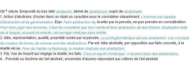 Définition académique pour le terme « abstraction » (parue en 1932).