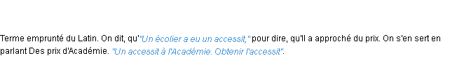 Signification du terme « accessit », parution de 1932, dictionnaire académique Français.