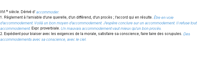Signification du terme « accommodement », parution de 1932, dictionnaire académique Français.