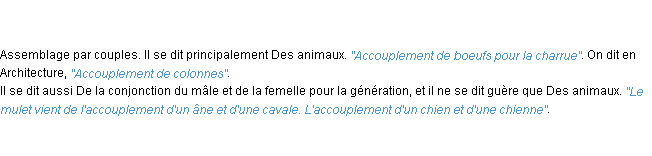 Définition académique pour le terme « accouplement » (parue en 1932).