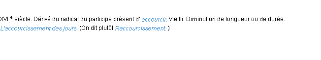 Définition de « accourcissement » de source académique (Académie Française, parution de 1986).