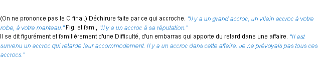 Définition de l’Académie Française (édition de 1986) pour le mot « accroc ».