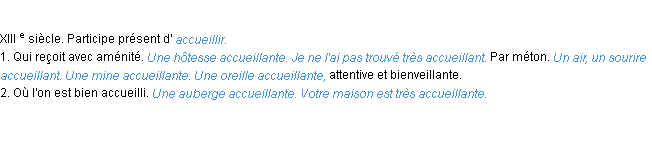 Définition du mot « accueillant » par Emile Littré (édition de 1876).