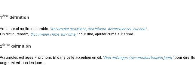 Signification du terme « accumuler », parution de 1932, dictionnaire académique Français.