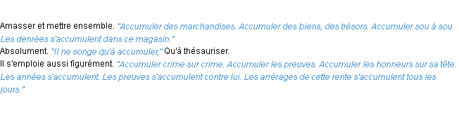 Signification du terme « accumuler », parution de 1986, dictionnaire académique Français.