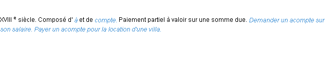 Définition du mot « acompte » par l’Académie Française (édition de 1986).