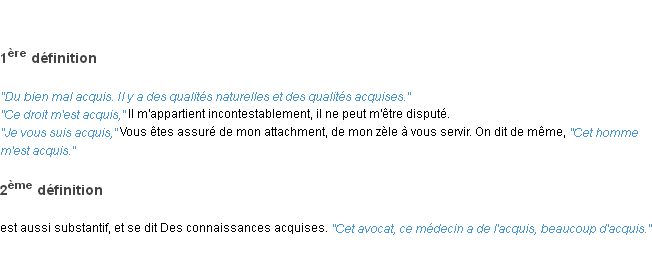 Définition développée dans dictionnaire d’Emile Littré (ancienne édition de 1876).Merci à Renaud et Sylvain pour la numérisation du mot acquis.