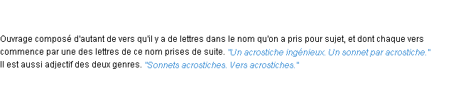 Signification du terme « acrostiche », parution de 1932, dictionnaire académique Français.
