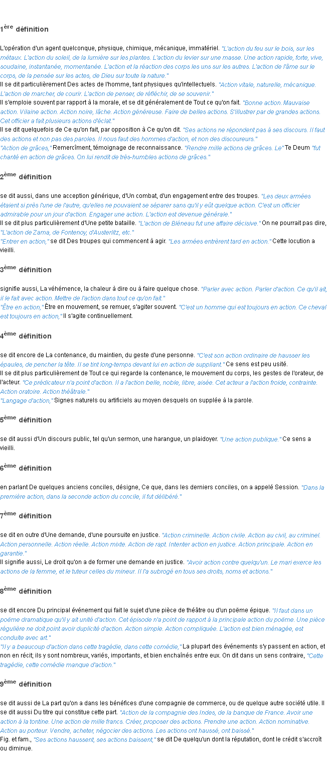 Ancienne définition du mot « action » par l’Académie Française (édition de 1835).