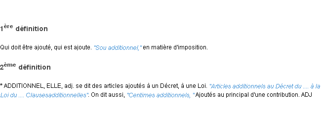 Définition du mot « additionnel » par l’Académie Française (édition de 1986).