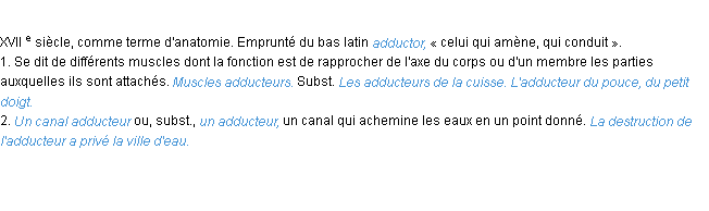 Signification éditée en 1986 pour le terme « adducteur » par l’Académie Française.