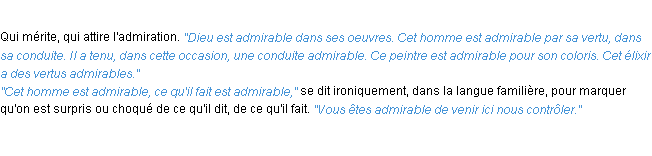 Quelques citations et utilisation du mot admirable dans la littérature et les publications journalistiques :
