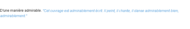 Définition académique pour le terme « admirablement » (parue en 1932).