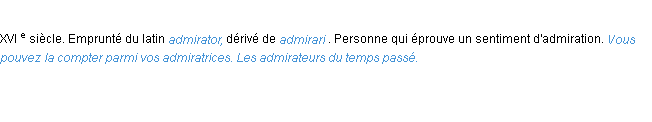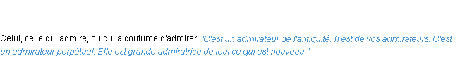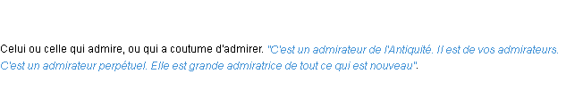 Ancienne définition de « admirateur » de source académique (Académie Française, parution de 1835).