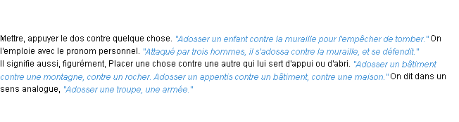 Signification du terme « adosser », parution de 1986, dictionnaire académique Français.