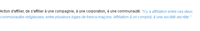Définition de l’Académie Française (édition de 1986) pour le mot « affiliation ».