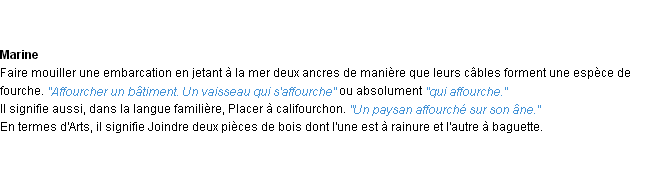 Ancienne définition du mot « affourcher » par l’Académie Française (édition de 1835).