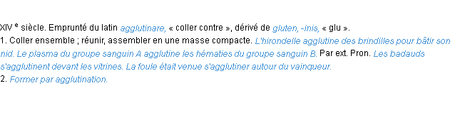 Ancienne définition de « agglutiner » de source académique (Académie Française, parution de 1835).