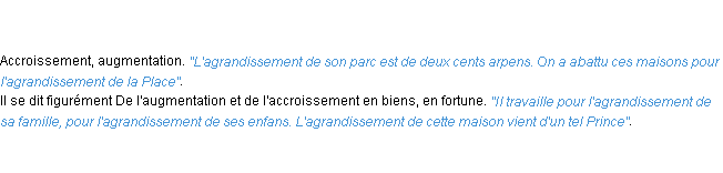 Ancienne définition de l’Académie Française (édition de 1798) pour le mot « agrandissement ».Merci à Thierry et Adèle pour la numérisation du mot agrandissement.