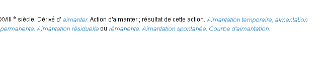 Définition du mot « aimantation » par Emile Littré (édition de 1876).Merci à Barthélémy et Lunete pour la numérisation du mot aimantation.
