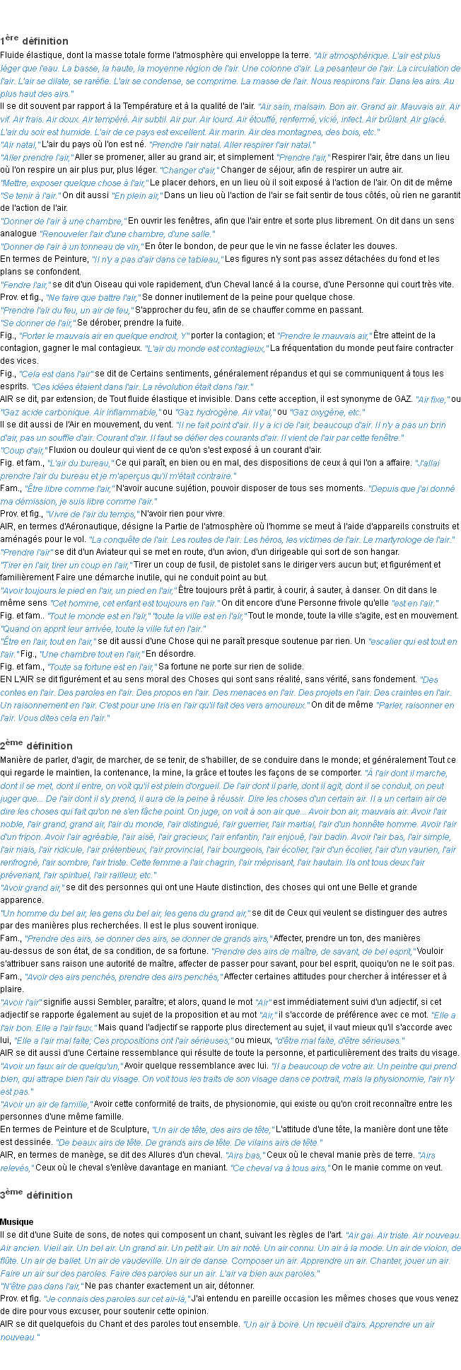 Signification éditée en 1932 pour le terme « air » par l’Académie Française.