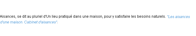 Ancienne signification issue du dico de l’Académie Française, parue en 1694.Merci à Honorine et Gilles pour la numérisation du mot aisances.