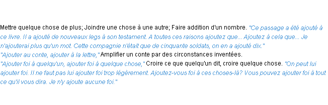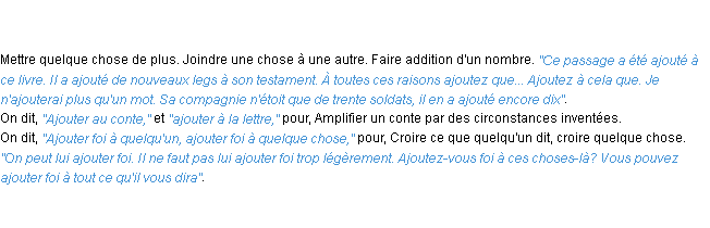 Signification éditée en 1986 pour le terme « ajouter » par l’Académie Française.