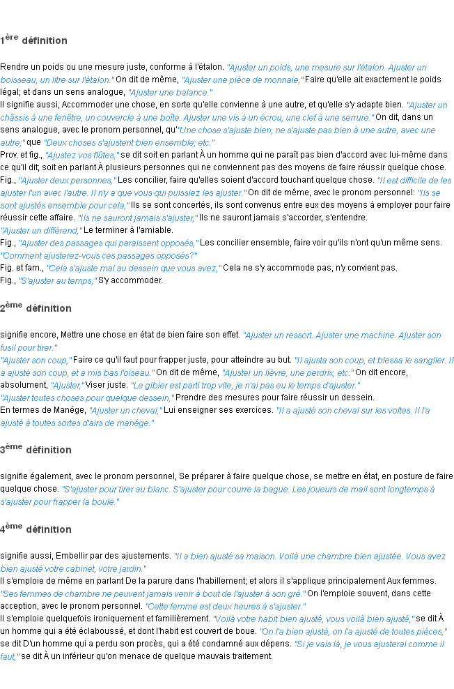 Définition académique pour le terme « ajuster » (parue en 1932).