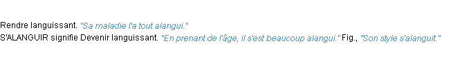 Signification du terme « alanguir », parution de 1986, dictionnaire académique Français.