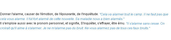 Signification éditée en 1986 pour le terme « alarmer » par l’Académie Française.