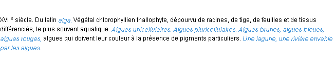 Définition de « algue » de source académique (Académie Française, parution de 1986).