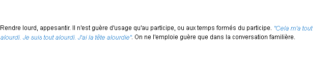 Ancienne définition académique pour le terme « alourdir » (parue en 1835).