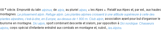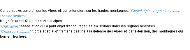 Définition de « alpin » de source académique (Académie Française, parution de 1932).