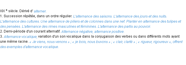 Définition du mot « alternance » (source wiktionary 2011).Merci à Noella et Lunete pour la numérisation du mot alternance.
