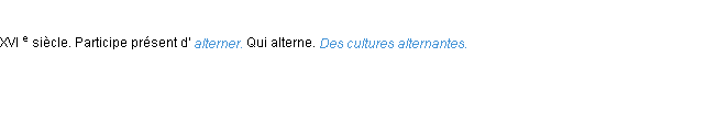 Signification du terme « alternant », parution de 1876 (dictionnaire le Littré).Merci à Fiacre et Céleste pour la numérisation du mot alternant.
