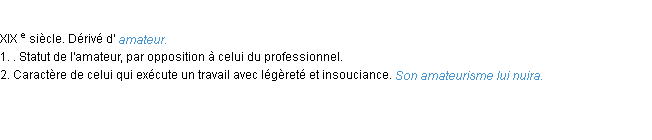 Définition issue du dictionnaire wiktionary pour le mot « amateurisme ».- Autres Recherches
