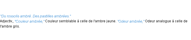 Ancienne signification parue en 1798 dans dictionnaire de l’Académie Française.Merci à Armand et Régis pour la numérisation du mot ambre.