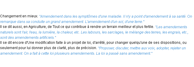 Définition de « amendement » de source académique (Académie Française, parution de 1932).