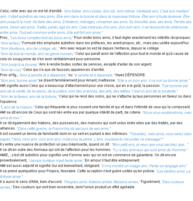 Définition académique pour le terme « ami » (parue en 1932).