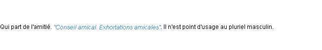 Ancienne signification parue en 1798 dans dictionnaire de l’Académie Française.Merci à Grégoire et Pascaline pour la numérisation du mot amical.