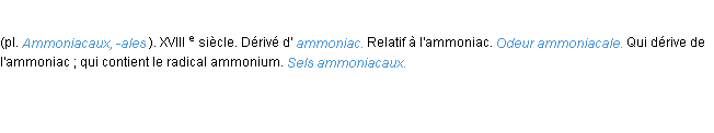 Définition « ammoniacal » du dictionnaire académique Français, parution de l’année 1986.