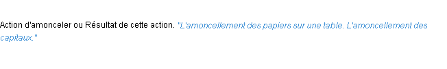 Définition de l’équipe de la-definition.fr (édition de 2009) pour le mot « amoncellement ».Merci à Clémence et Fabien pour la numérisation du mot amoncellement.